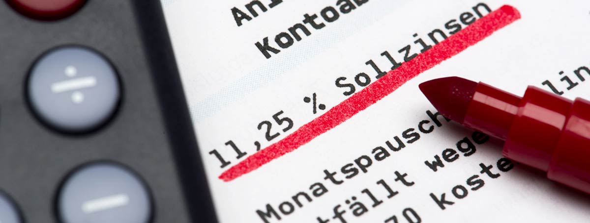 Hlavním problémem s vyčerpáním kontokorentu jsou následné náklady. Na rozdíl od tradičních splátkových úvěrů je úroková sazba u kontokorentů relativně vysoká. V konečném důsledku to znamená: čím déle budete čekat se splacením záporného zůstatku na účtu, tím dražší to pro vás bude!